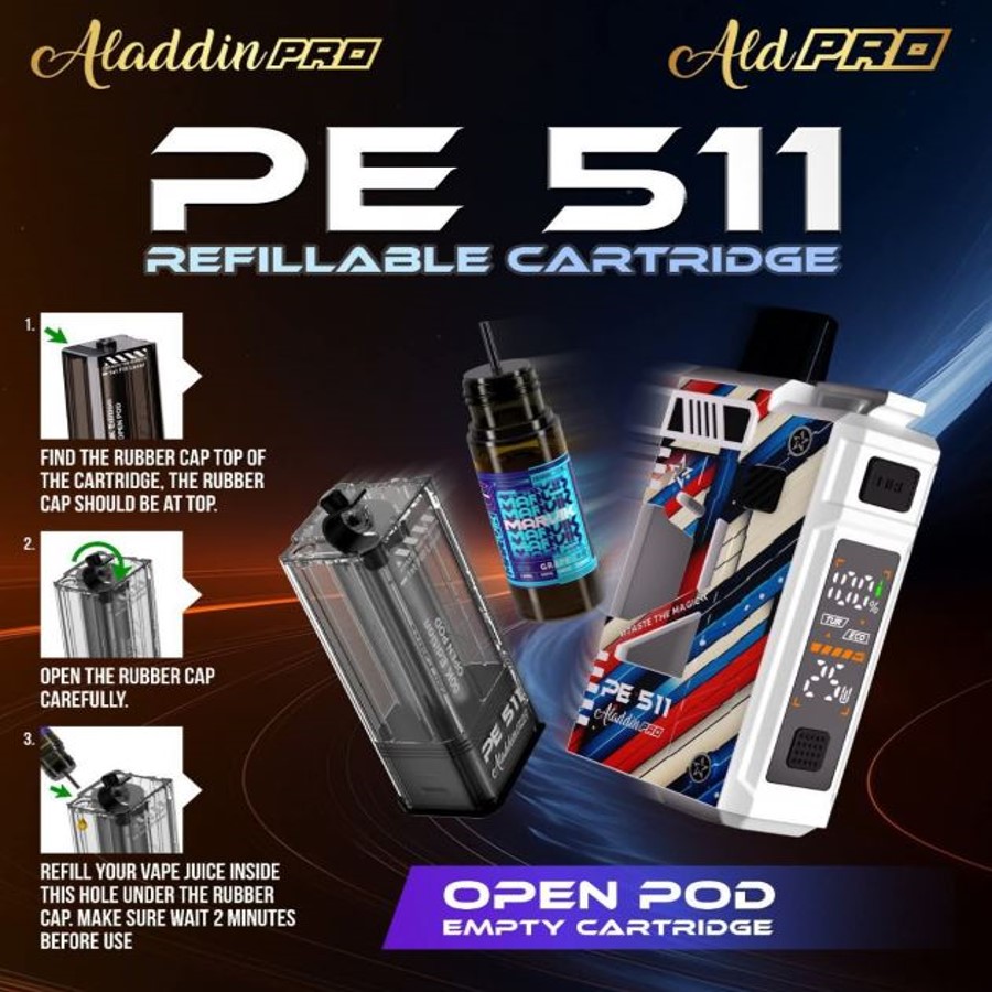 ALADDIN PRO PE 511 EMPTY POD CARTRIDGE Specification: Compatible with : Aladdin Marvik Salt Series ...